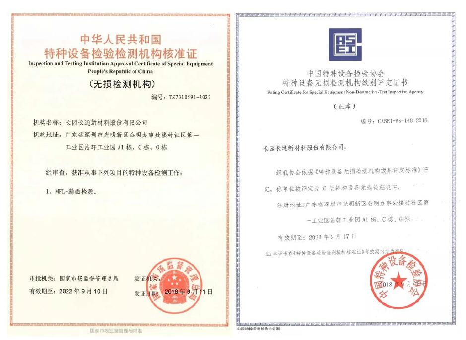 CYG Changtong was awarded a professional qualification certificate in the field of pipeline inspection, which will enhance the company's further development of pipeline anti-corrosion business.On Sep...